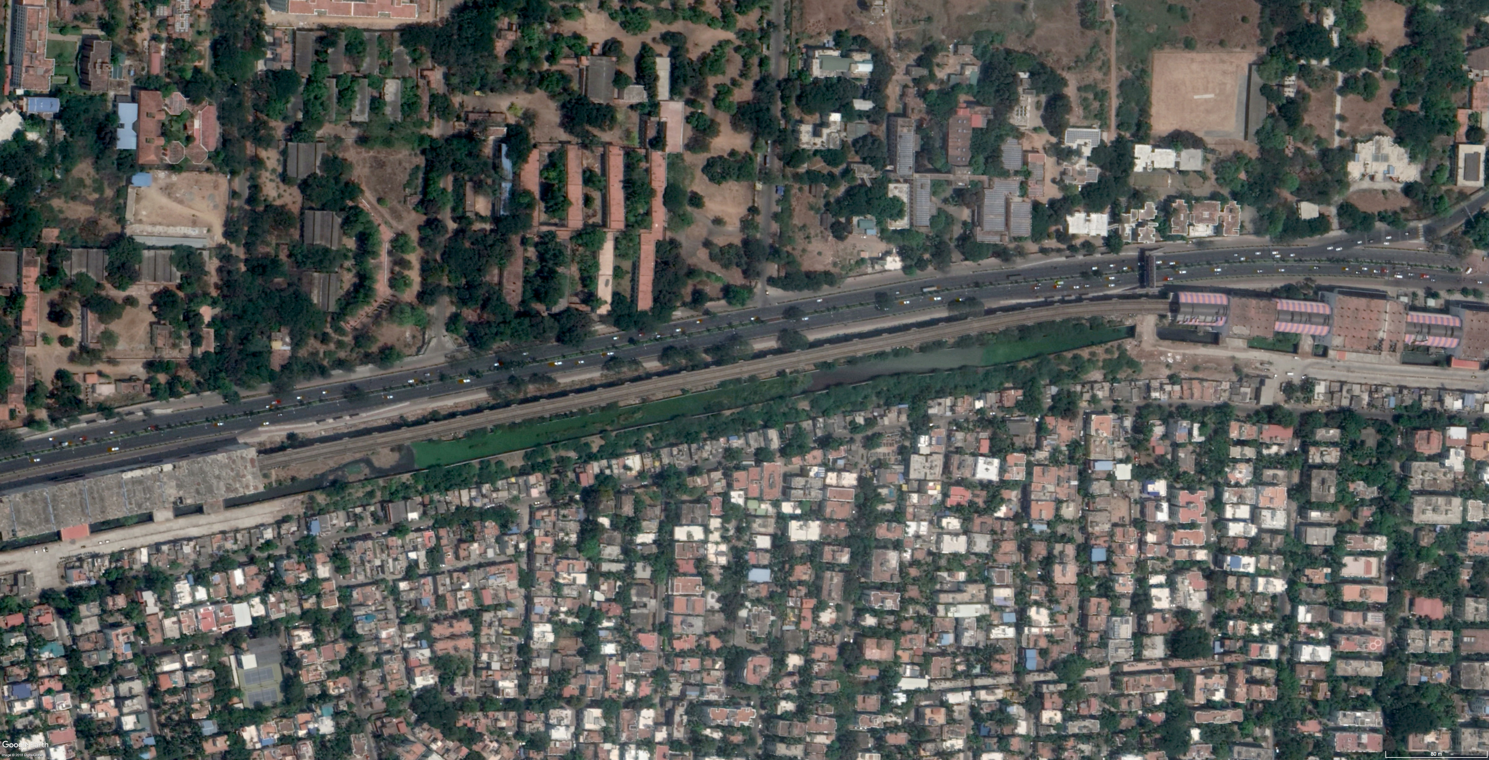Formal and informal developments encroach lakes and river beds — indicating neglect towards natural ecosystems. The elevated mass-rapid transit system (MRTS) compromises the flow of the canal at several locations.