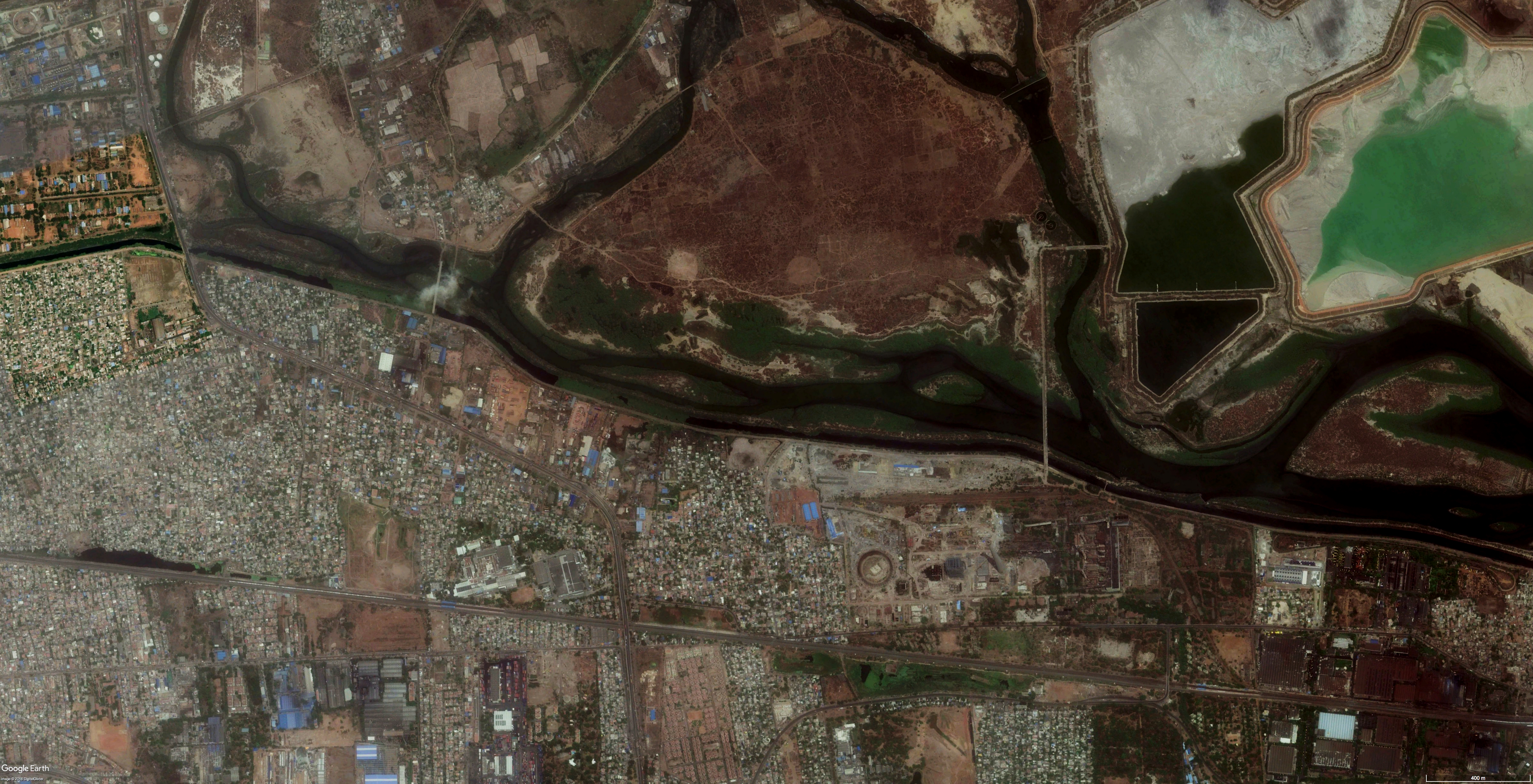 The three rivers and the Buckingham canal forms sites for solid waste disposal in the city. The water channels encounter 400-700 sewage outfalls from informal settlements within the city.